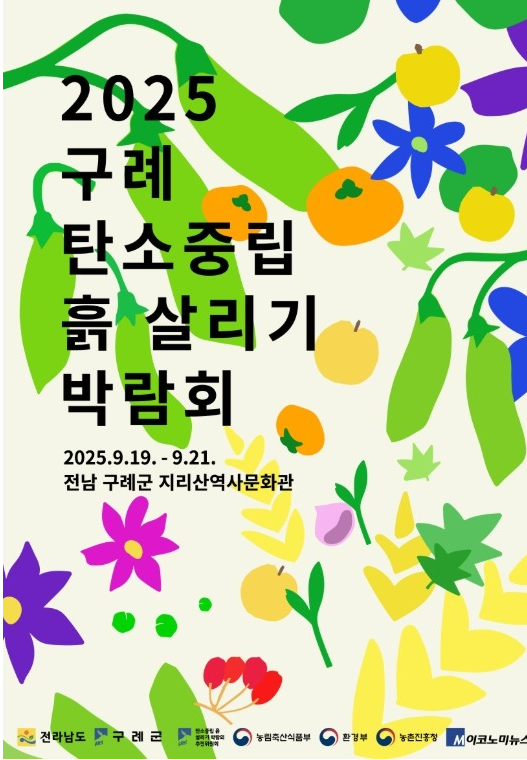 전남 구례군은 오는 9월 19일부터 21일까지 3일간 지리산역사문화관 일원에서 ‘2025 구례 탄소중립 흙 살리기 박람회’를 개최한다.
