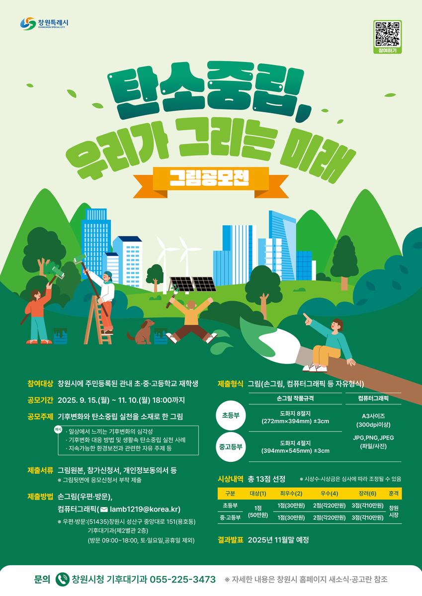 「탄소중립, 우리가 그리는 미래」그림 공모전을 개최하오니 많은 관심과 적극적인 참여를 바랍니다.