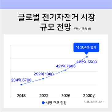 글로벌 시장조사 업체 리서치네스터(Research Nester)에 따르면, 2023년 전 세계 전기자전거 시장 규모는 4412000만 달러(643622억 원)를 넘어섰으며, 2024년에는 약 5007000만 달러(73421억 원) 규모로 성장할 것으로 전망된다. 2036년 말까지는 2267억 달러(3307100억 원)를 초과할 것으로 예측되며, 연평균 성장률(CAGR)13.8% 이상을 기록할 것으로 예상된다. 국내 전기자전거 시장 또한 글로벌 흐름과 비슷하다. 글로벌 시장조사기관 모르도르 인텔리전스(Mordor Intelligence)에 따르면 2025년 국내 전기자전거 시장 규모는 9034만 달러(13182410만 원)로 추정되며 2029년까지 14990만 달러(21873408만 원)에 이를 것으로 전망된다. 국내 CAGR 역시 10.6% 이상 증가할 것으로 예상된다.