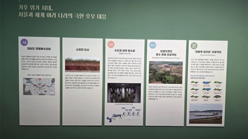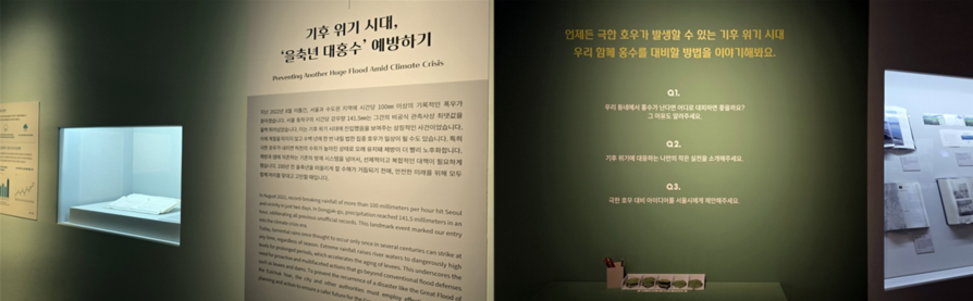 또 전시는 오늘날의 현실도 다룹니다. 과거에 만든 홍수 방지 시설만으로는 막기 어려운 큰 비가 자주 내리면서, 100년 전부터 쌓아온 서울의 홍수 대비 노력이 다시 시험받고 있습니다. 최근 몇 년간 반복되는 극한 폭우, 침수된 지하 공간과 무너진 도로는 기후위기가 일상을 위협하고 있음을 보여줍니다.