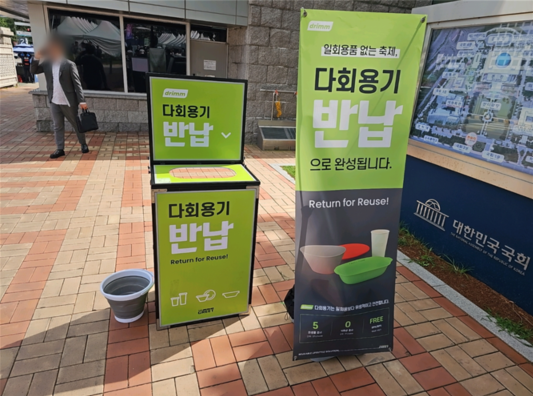 그러나 최근 축제, 행사에서도 탄소중립을 실현하는 모습이 보이기 시작했습니다. 실제로 <2025 국회 입법박람회>에서도 푸드트럭을 운영했는데, 음식을 먹을 때, 다회용기로 구매할 수 있게 운영하며 일회용품의 사용을 줄였습니다.