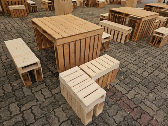 또한, 맛있는 음식을 먹을 수 있었던 푸드트럭, 임산물(숲푸드) 판매 부스에서도 목재를 활용한 쉼터를 찾아볼 수 있었습니다. 테이블, 의자 등에서 목재를 사용해 쉼터를 마련한 모습이 눈에 띄었습니다.