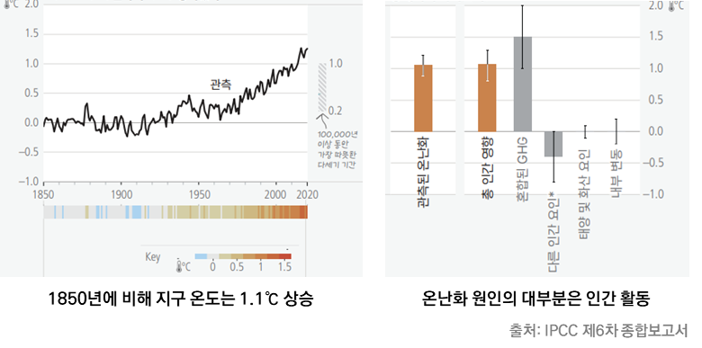 [지구 온도는 산업화 이전에 비해 약 1.1℃ 상승]