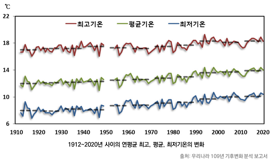 · 우리나라 109년(1912~2020년) 기후변화 분석 보고서(기상청, '21)