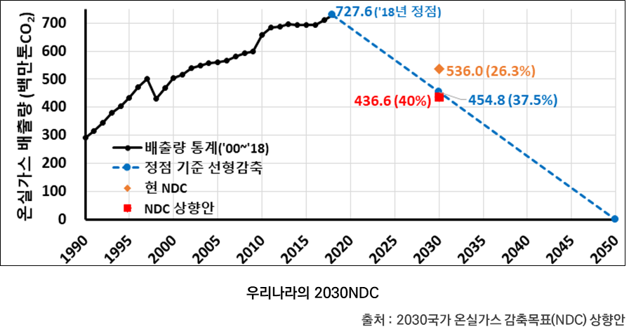 우리나라의 2030NDC는 2018년 대비 40% 감축